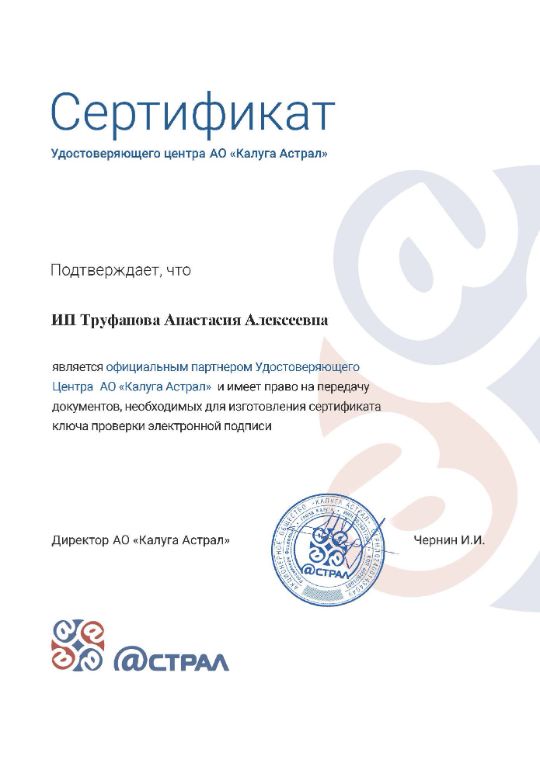 Электронное свидетельство, которое подтверждает, кто является владельцем ЭП. В нем отображены: уникальный номер сертификата. Сертификат получают в удостоверяющем центре.
